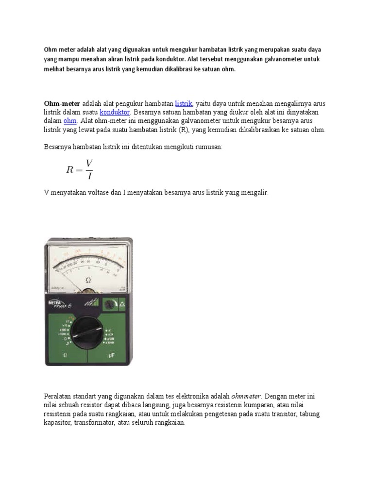 Ohm Meter Adalah Alat Yang Digunakan Untuk Mengukur . Sumber Gambar : www.scribd.com
